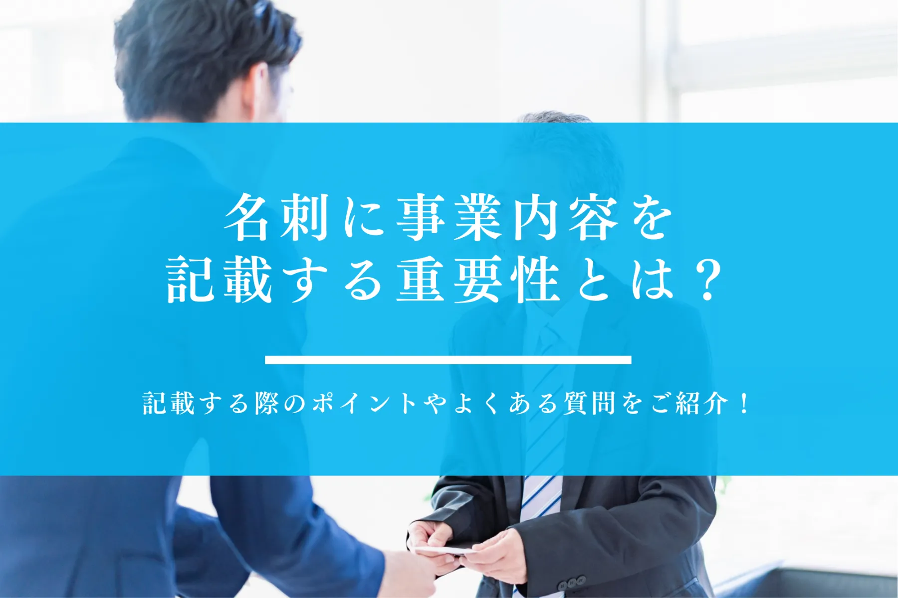 本記事では、名刺に事業内容を記載する重要性や記載する際のポイントをご紹介します。また、よくある質問も解説していますので、ぜひ参考にしてみてください。