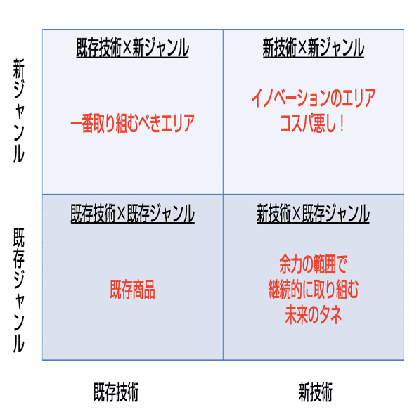 「新技術」×「新ジャンル」は、イノベーションという時間とお金のがかかる、コストパフォーマンスの悪い事業領域。
